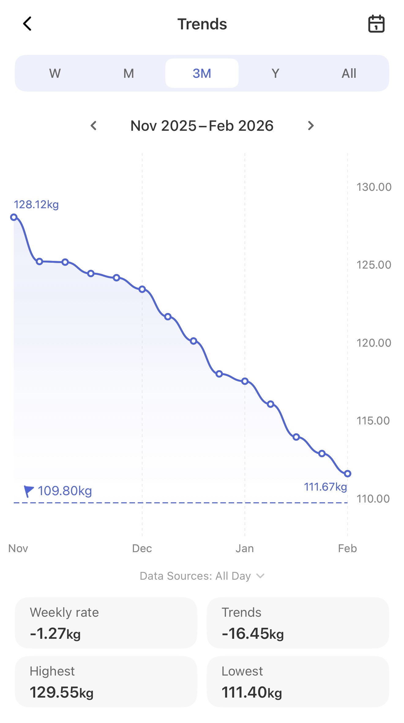 Today, I’m around 112kg. The graph is deeply satisfying in a very nerdy way. It’s just a calm, sensible line trending steadily downwards, to the tune of a bit over 22kg gone in about three or four months.